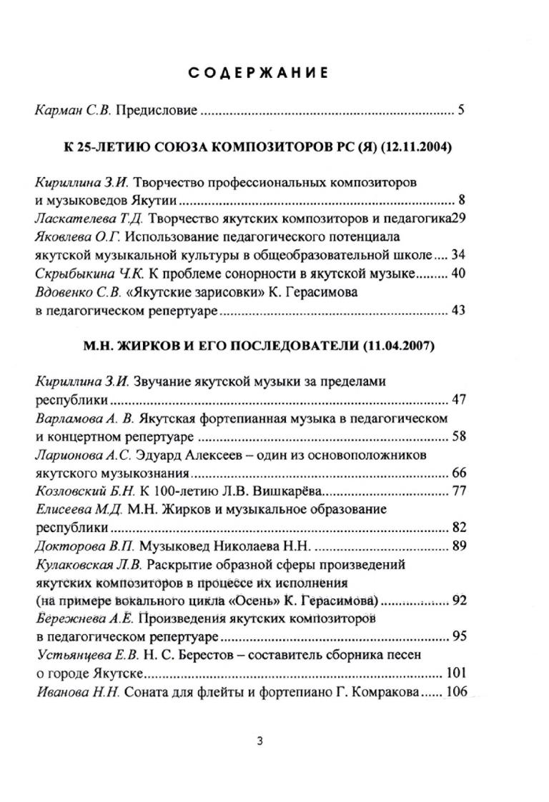 М. Н. Жирков и его последователи : сборник докладов республиканских научно-практических конференций, посвященных 25-летию СК РС(Я) и 115-летию М. Н. Жиркова (2004, 2007) / [редактор З. И. Кириллина ; составитель Ч. К. Скрыбыкина]. - Якутск : Изд-во ЯГУ, 2007. - 132 с. : нот. ).
