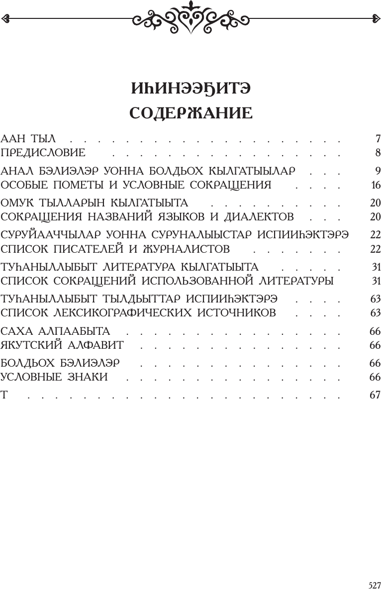 А. Слепцова. - Новосибирск : Наука, 2004-. - 25 см. ISBN 5-02-032332-2. Впервые издаваемый многотомный академический "Толковый словарь якутского языка" с наибольшей полнотой охватывает лексику и фразеологию современного якутского литературного языка, распротраненные диалектизмы, народную лексику, изобразительные слова разговорного языка, а также специфический фольклорный фонд (устаревшие слова и выражения, формульные элементы и др.) Значения слов иллюстрируется речениями и цитатами из образцов якутской литературы и фольклора. Т. 11 (Буква Т: төтөллөөх - тээтэҥнээ): (Буква Т: төтөллөөх - тээтэҥнээ) : около 4000 слов и фразеологизмов / [ред. 11-го т.: к.филол.н. Н. Н. Васильева, к.филол.н. В. Д. Монастырев, к.филол.н. А. Г. Нелунов, к.филол.н. Н. И. Попова (ред. рус. текста)]. - 2014. - 525, [2] с. Загл. обл.