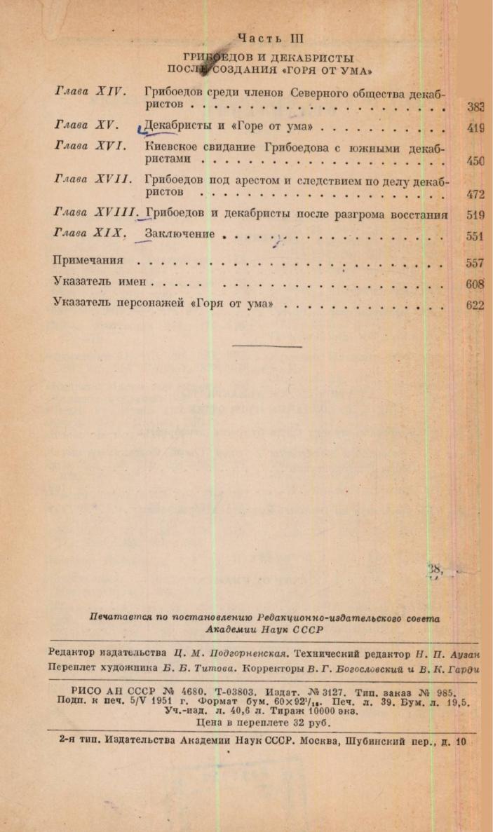 А. С. Грибоедов и декабристы / М. В. Нечкина ; ответственный редактор А. М. Еголин ; Академия наук СССР, Институт истории. - Изд. 2-е. - Москва : Издательство Академии наук СССР, 1951. - 623, [1] с.