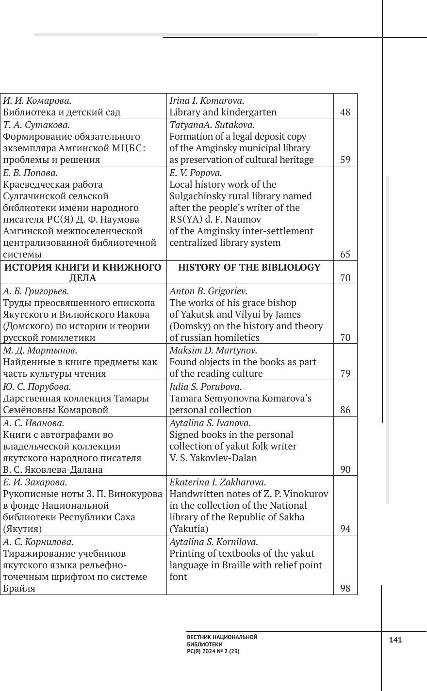 Вестник Национальной библиотеки Республики Саха (Якутия) : профессиональный журнал. - 2024, N 2 (29). - 1 файл (141, [1] с. ; 109 Мб).