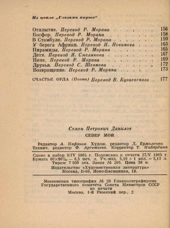 Север мой : cтихи и поэма : перевод с якутского / Семен Данилов ; [предисловие М. Львова]. - Москва : Художественная литература, 1965. - 208 с., [1] л. портр.