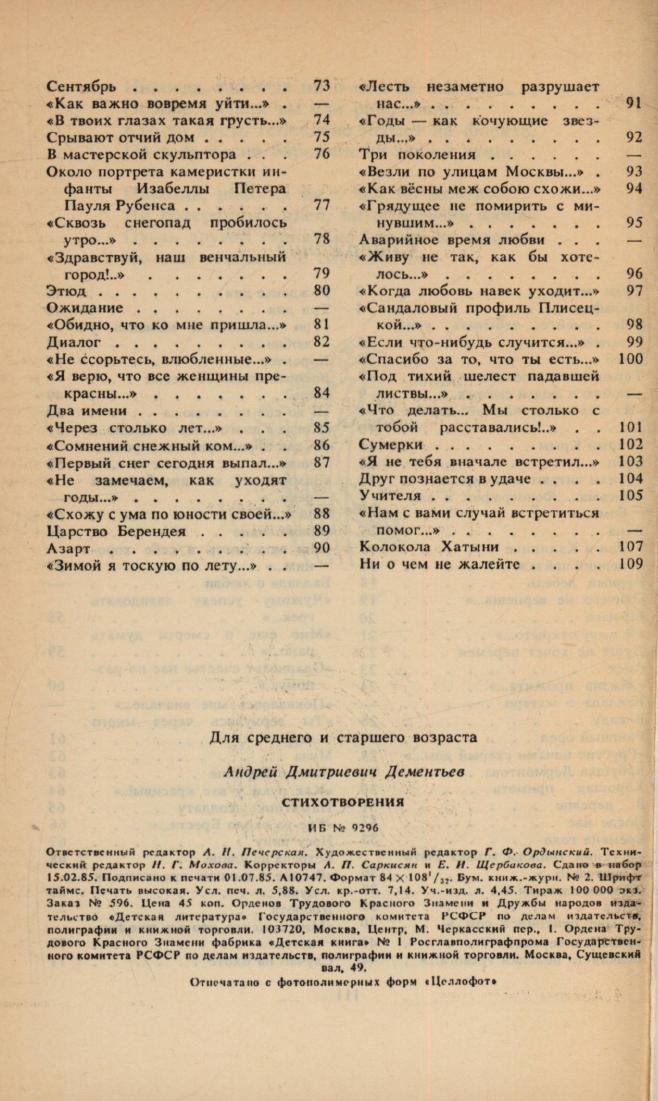 Стихотворения : [для среднего и старшего школьного возраста] / Андрей Дементьев ; [художник Л. Бирюков]. - Москва : Детская литература, 1985. - 112 с.