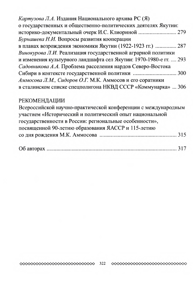 Исторический и политический опыт национальной государственности в России: региональные особенности : материалы Всероссийской научной конференции с международным участием, посвященной 115-летию со дня рождения М. К. Аммосова и 90-летию образования ЯАССР, 26 апреля 2012 года / [редкол.: А. А. Бурцев, В. Н. Иванов, Н. Н. Радченко и др. ; отв. ред. О. Г. Сидоров]. - Якутск : ИД СВФУ, 2013. - 322 с.