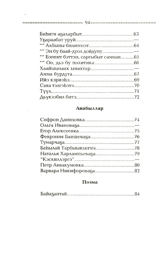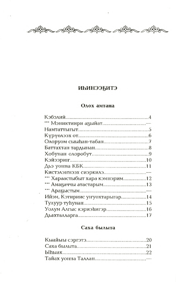 В новой книге заслуженного работника культуры Республики Саха, лауреата литературной премии "Алаш" Казахстана Винокурова Н.Е.-Урсуна включены произведения последних лет в разделах под названиями "Вкус жизни", "Тучи Якутии", "В храме природы", "Предсказание сна", а также "Посвящения". Публицистическая поэма "Баягантай" — произведение художественно утверждающее новую версию происхождения части якутов