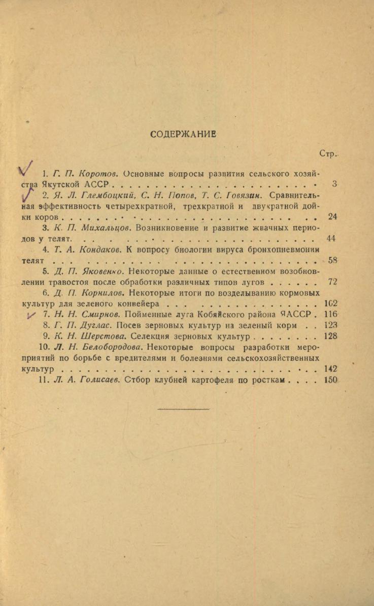 М. Г. Сафронова. Труды Якутского научно-исследовательского института сельского хозяйства / [редкол.: Г. П. Коротов (отв.ред.), И. Ф. Варламов, К. П. Михальцов и др.]. - Якутск : Кн. изд-во, 1958- . Вып. 1. - Якутск : Якутское книжное издательство, 1958. - 157, [3] с.